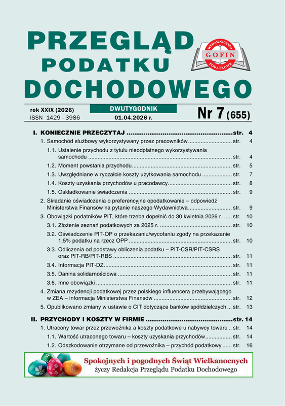i CIT). W każdym numerze na 68 stronach znajduje się mnóstwo porad dotyczących m.in. rozliczania przychodów i kosztów, obowiązków płatnika, amortyzacji, opodatkowania dochodów z zagranicy, uznawania wydatków za koszt uzyskania. Na bieżąco publikowane są informacje o zmianach