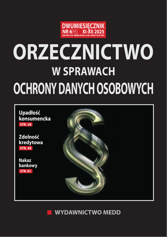 Dwumiesięcznik poświęcony problematyce ochrony danych osobowych. W każdym numerze znajduje się obszerny przegląd najnowszych i najciekawszych orzeczeń sądowych z tego zakresu wraz z uzasadnieniami, a także najważniejsze rozstrzygnięcia Generalnego Inspektora Ochrony Danych Osobowych.