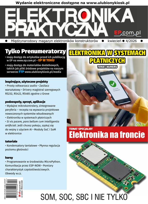 W magazynie Elektronika Praktyczna prezentujemy pełne spektrum interesujących ich informacji: od tych o najnowszych komponentach układów elektronicznych poprzez urządzenia różnorodnego zastosowania i oprogramowanie, aż po zastosowania elektroniki pod postacią rozwiązań układów automatyki i mechatroniki w systemach przemysłowych.