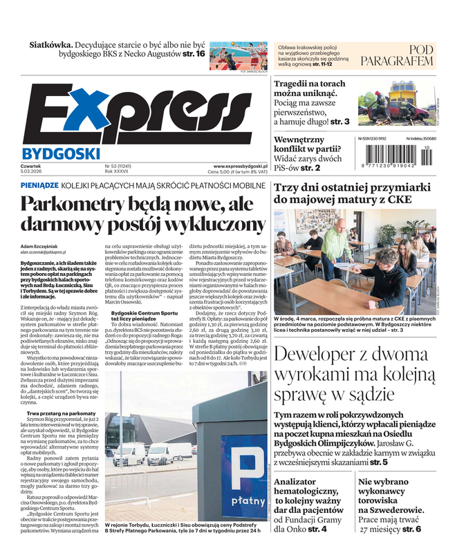 Express Bydgoski to dziennik ukazujący się od poniedziałku do soboty na terenie Bydgoszczy i okolic. Na jego łamach znajdziesz najświeższe informacje z miasta, regionu, Polski i świata, przeplatane ciekawymi komentarzami.