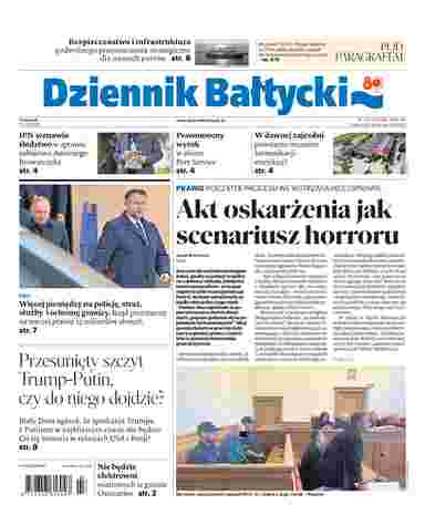 Dziennik Bałtycki to dziennik informacyjno-publicystyczny ukazujący się na Pomorzu. Gazeta ukazuje się przez 6 dni w tygodniu, od poniedziałku do soboty. Koncentrujemy się na życiu mieszkańców naszego regionu. Ich codzienne sprawy są dla nas najważniejsze. W każdy piątek do dziennika dołączane są tygodniki lokalne i dodatek z programem telewizyjnym.