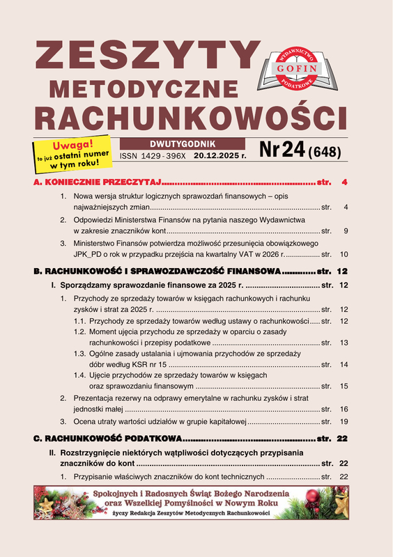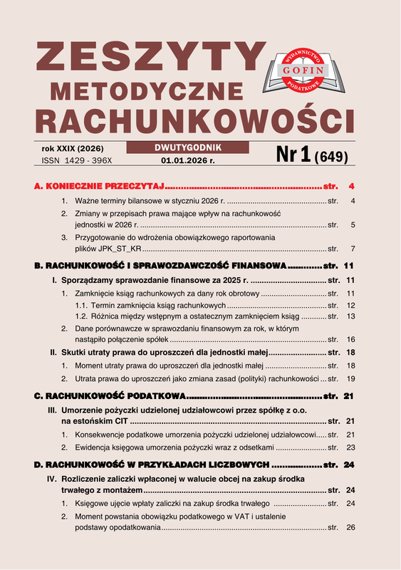 Zeszyty Metodyczne Rachunkowości - dwutygodnik szczegółowo wyjaśnia problemy związane